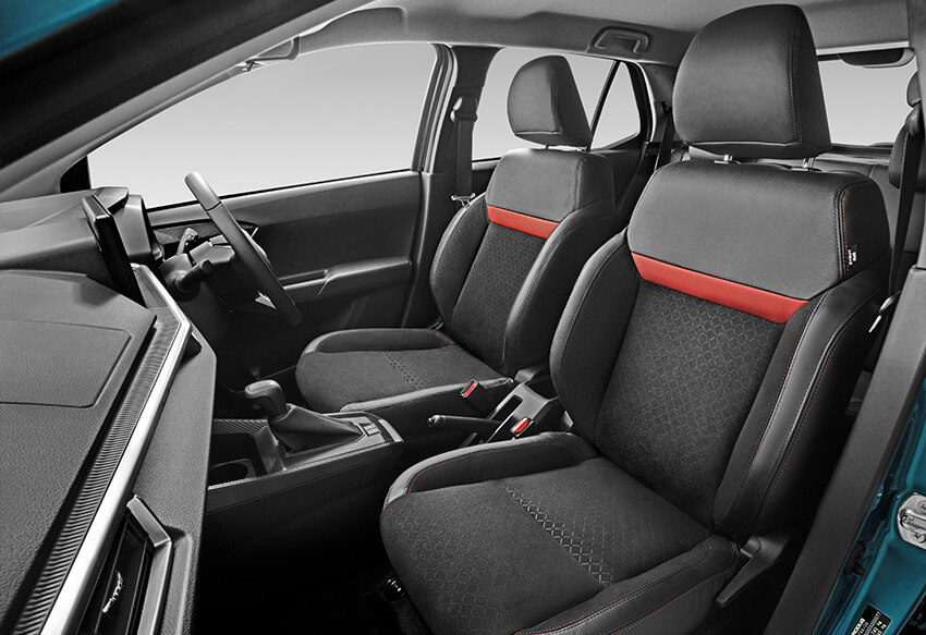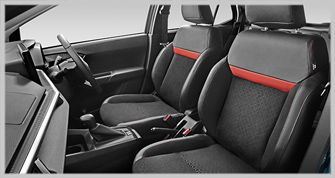 | Seats (Type) | Semi-Bucket with Semi-Leather and Stitching | Semi-Bucket with Fabric | Standard with Fabric |